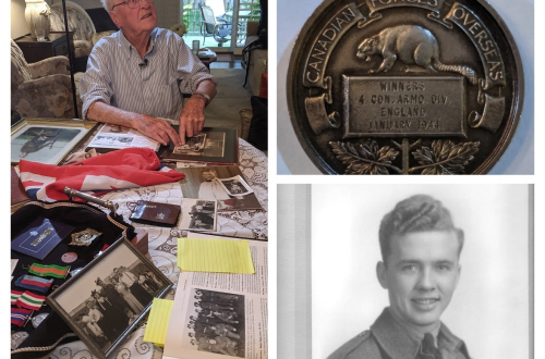 Jack French had de spullen verzameld op de tafel voor zich, toen hij donderdag zijn verhaal vertelde over zijn broer Cecil. Cecil was sluipschutter bij The Argyll and Sutherland Highlanders of Canada. Hij sneuvelde op 14 april 1945 in de omgeving van Friesoythe, waarschijnlijk getroffen door de kogel van een Duitse sluipschutter. Hij ligt in Holten begraven (IX A 5).